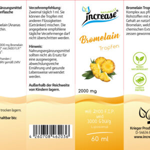 Eine Tagesdosis enthält 2000 mg natürlichem Bromelain. Pro Flasche sind 60.000 mg Bromelain enthalten.
