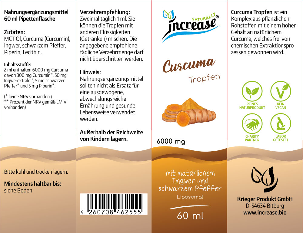 Zutaten: MCT Öl, Curcuma (Curcumin), Ingwer, schwarzem Pfeffer, Piperin, Lecithin.