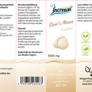 Eine Tagesdosis enthält 5000 mg natürlichem Lion’s Mane. Pro Flasche sind 150.000 mg Lion’s Mane enthalten.