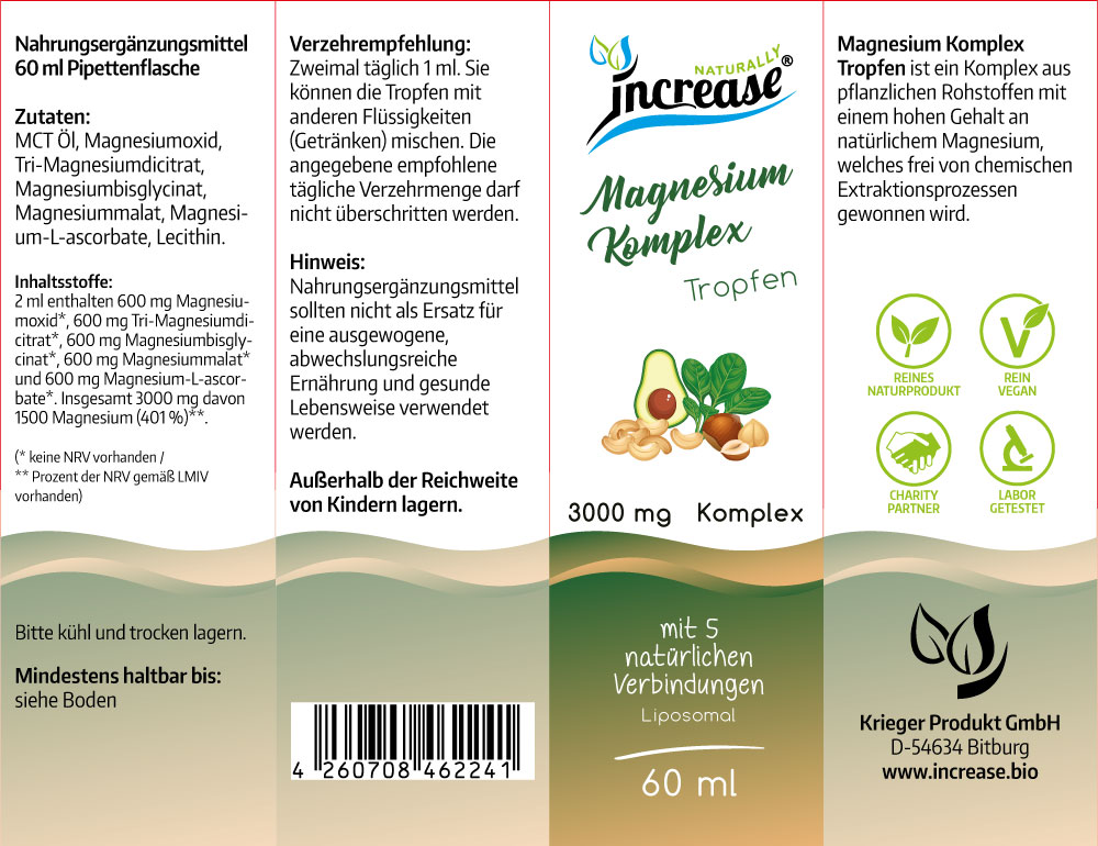 Magnesium Komplex Tropfen ist ein Komplex pflanzlicher Rohstoffe mit einem hohen Gehalt an natürlichem Magnesium, welches frei von chemischen Extraktionsprozessen gewonnen wird.