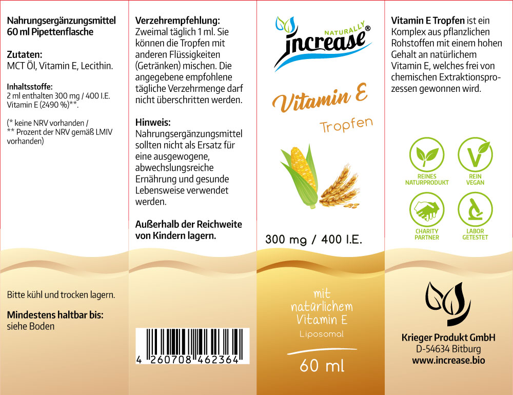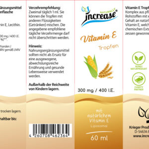 Vitamin E Tropfen ist ein Komplex pflanzlicher Rohstoffe mit einem hohen Gehalt an natürlichem Vitamin E, welches frei von chemischen Extraktionsprozessen gewonnen wird.