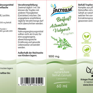 Beifuß Tropfen ist ein Komplex pflanzlicher Rohstoffe mit einem hohen Gehalt an natürlichem Beifuß, welcher frei von chemischen Extraktionsprozessen gewonnen wird.