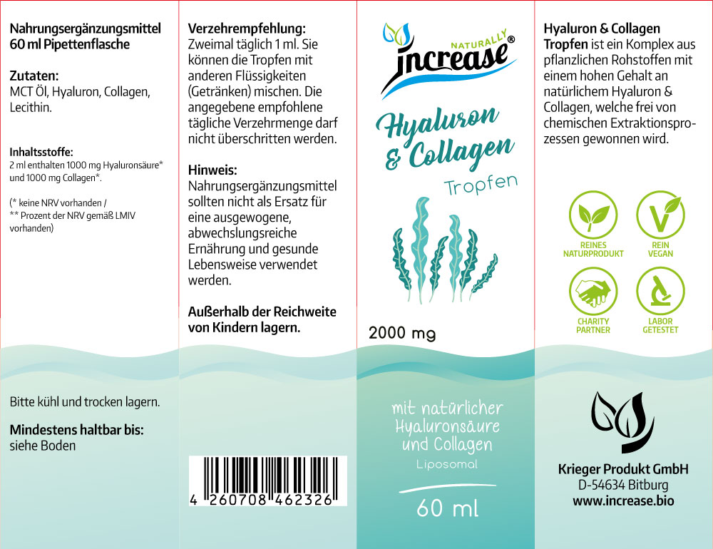 Im Angebot enthalten sind 3 Packungen Increase Hyaluron & Collagen Tropfen 60 ml zum Preis von 2 Packungen.