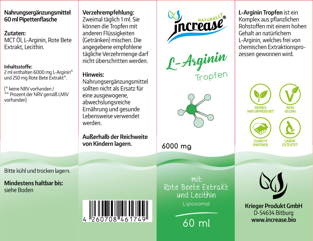 L-Arginin Tropfen ist ein Komplex pflanzlicher Rohstoffe mit einem hohen Gehalt an natürlichem L-Arginin, welches frei von chemischen Extraktionsprozessen gewonnen wird.